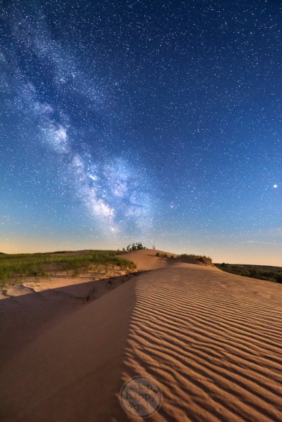 The core of the Milky Way burns over the wavy shifting sands at Sleeping Bear Point