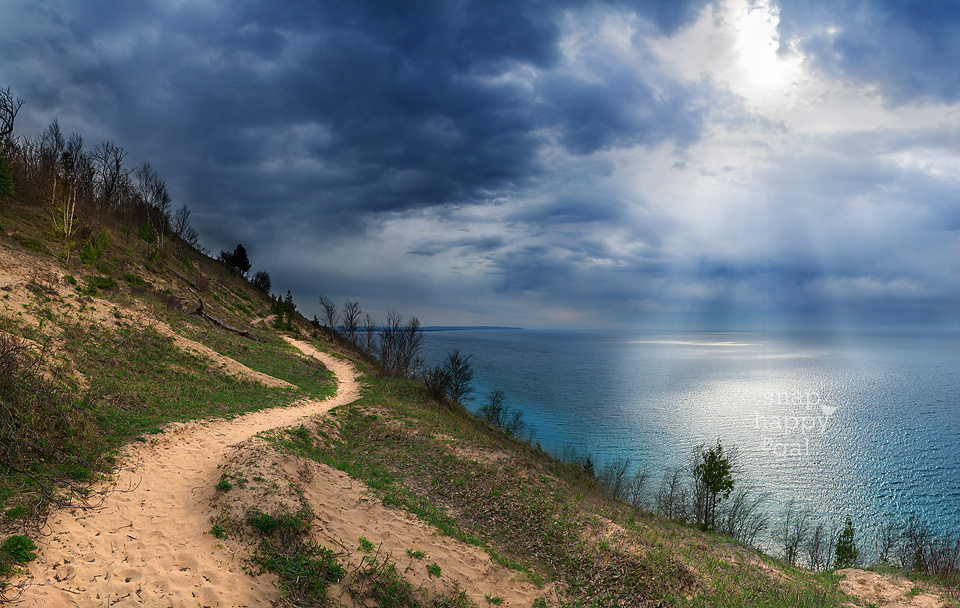 Sunrays shine down on Lake Michigan at Empire Bluffs
