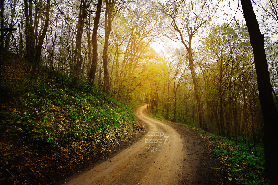 A country road winds through Michigan’s Leelanau county in the spring