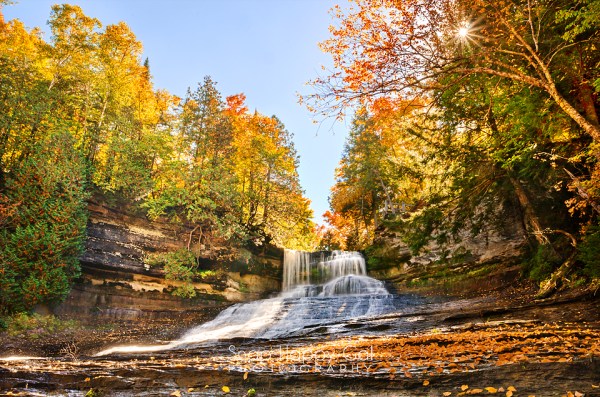 Autumn color galore at this spectacular cascading waterfall near Deerton, Michigan.