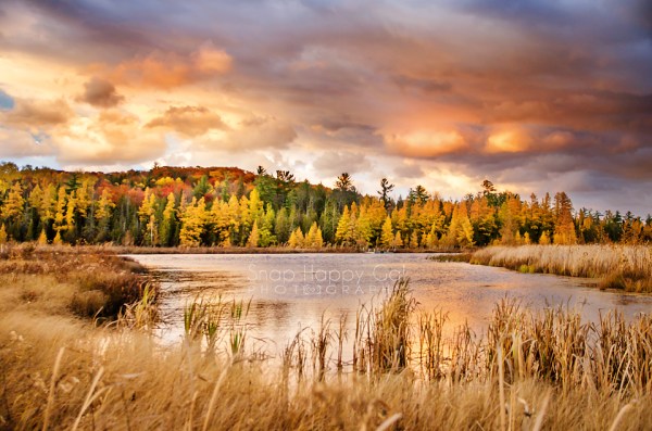 A vibrant sunset over the Grass River Wetlands near Bellaire, Michigan.