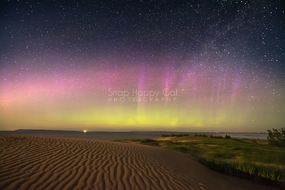 Aurora Borealis lights up sky – Sleeping Bear Dunes.