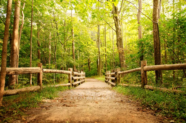 Cedar fencing and footbridge welcome hikers into the forest – Traverse City, Michigan.