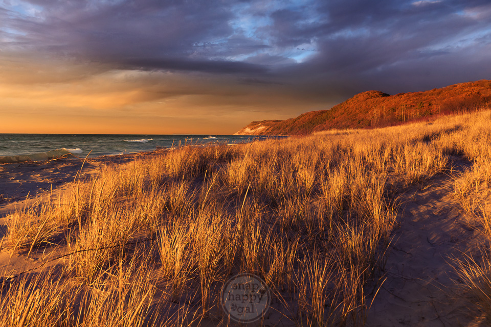 Color Opposites – Warm light and a cool purple sky play amid the dune grass at Esch Beach